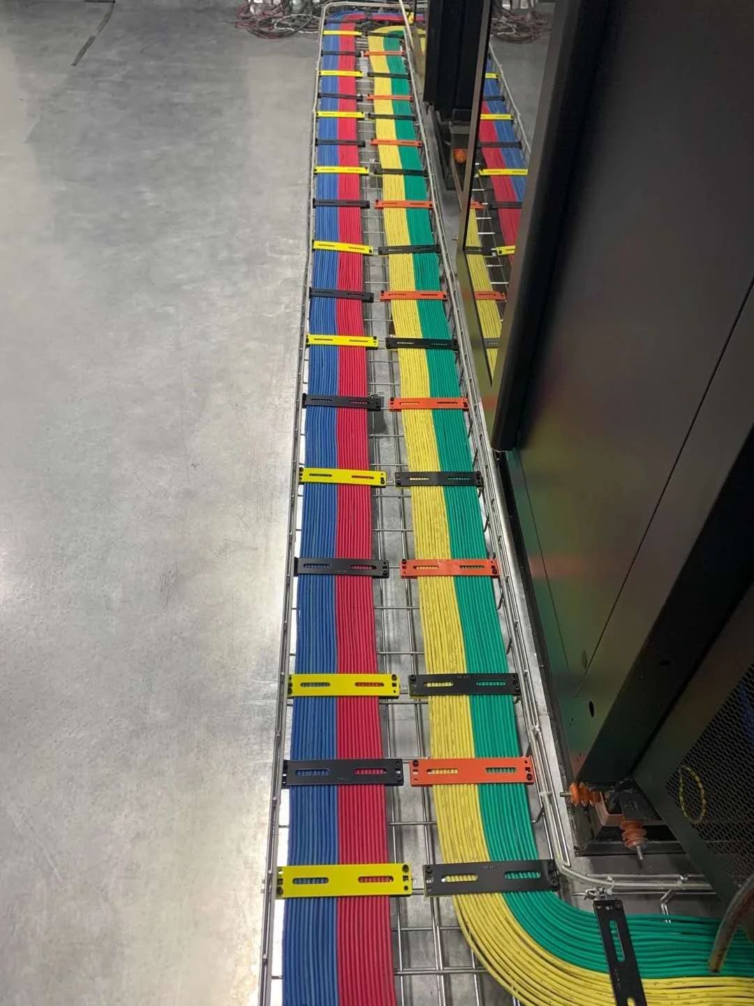 8、柜体与柜体之间走线一般是从柜体的顶部方向来进行布线。