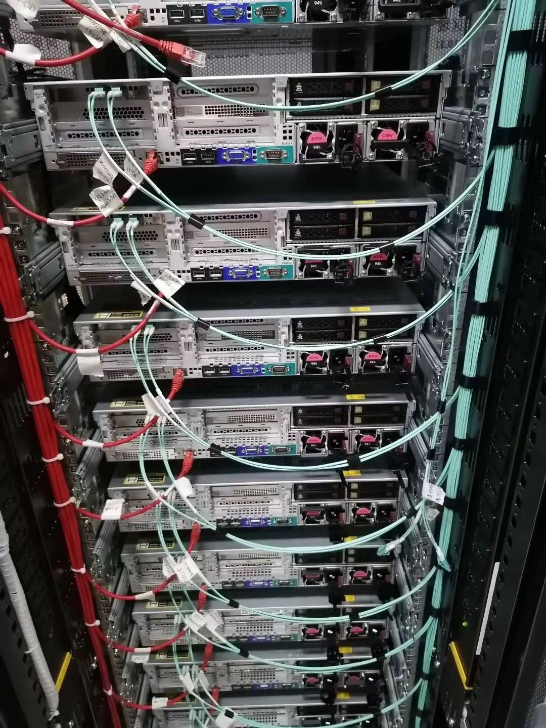 7、机柜布线时要确保电源线插头与服务器电源接头两端有标签扎带固定。